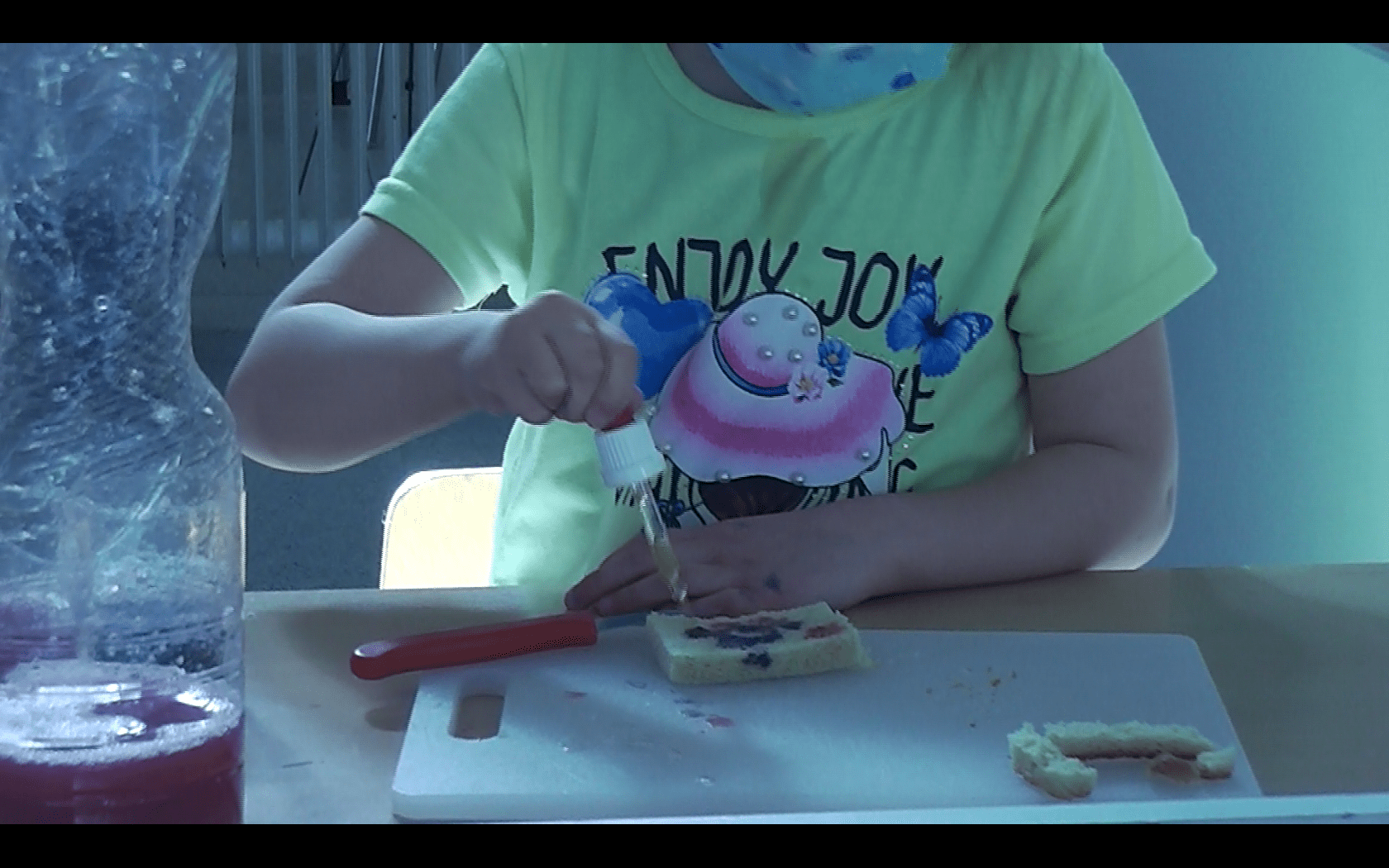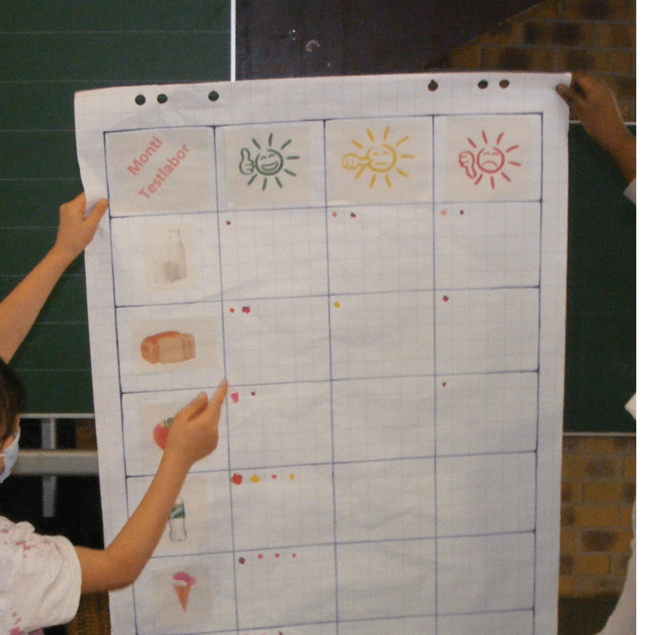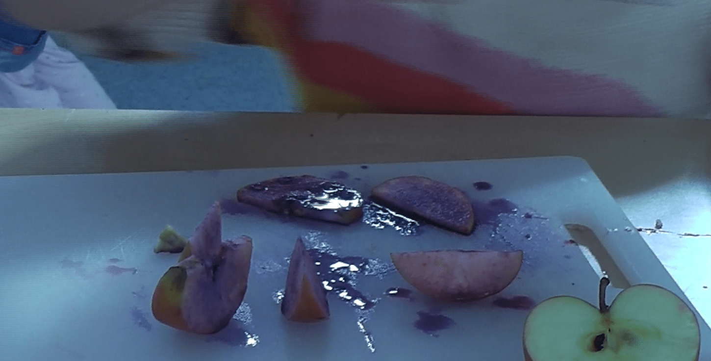 Jetzt wollten die Farbforscherinnen und Farbforscher wissen, wie denn Farben überhaupt schmecken. Schmeckt ein blauer Apfel lecker? Wie schmeckt rotes Brot? Muss Milch weiß sein, damit sie lecker ist?