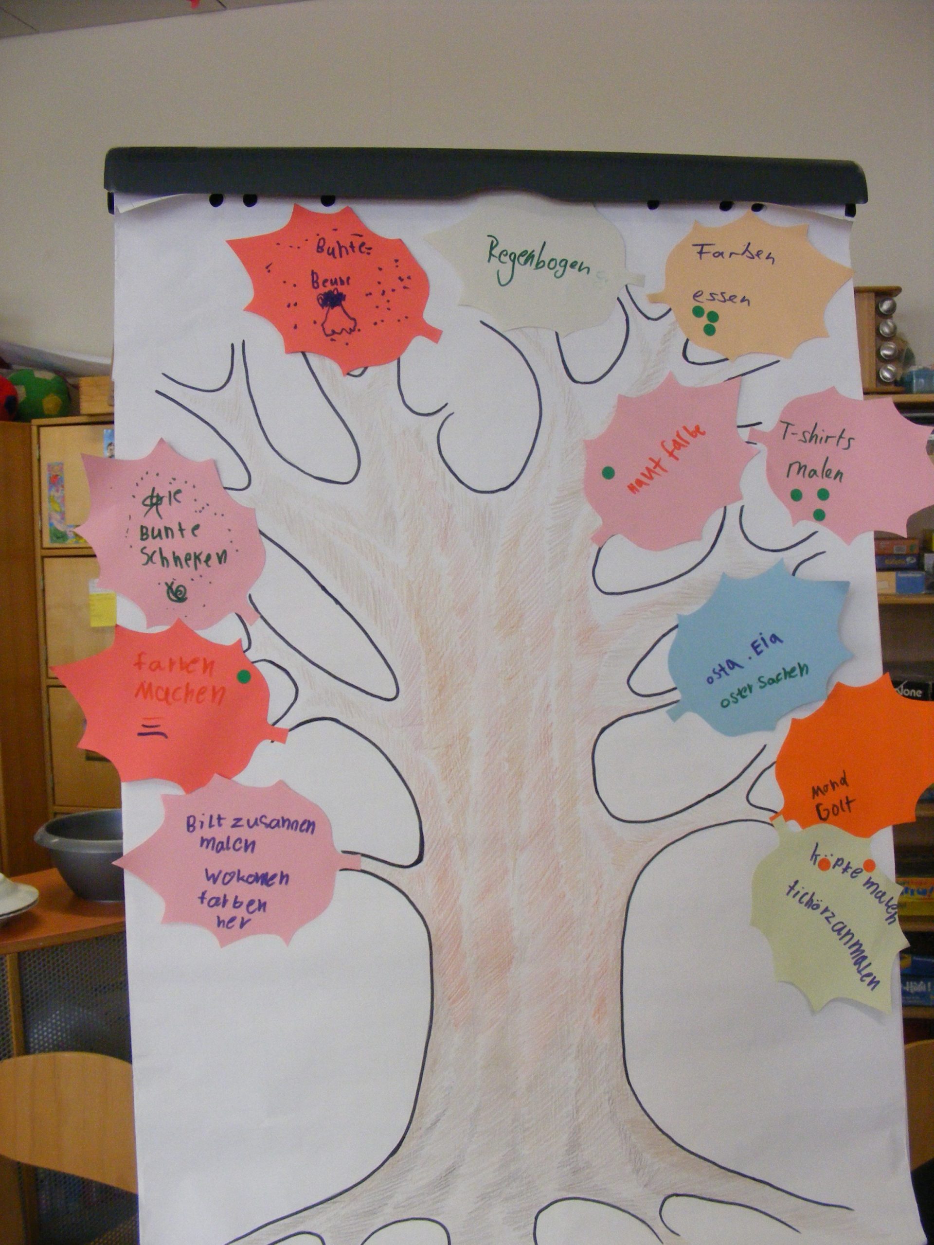 Gemeinsam haben wir das Buch Der Streik der Farben gelesen und Ideen gesammelt, was uns an Farben denn alles interessiert. Unser Plan: Wir machen unsere Farben einfach selbst!