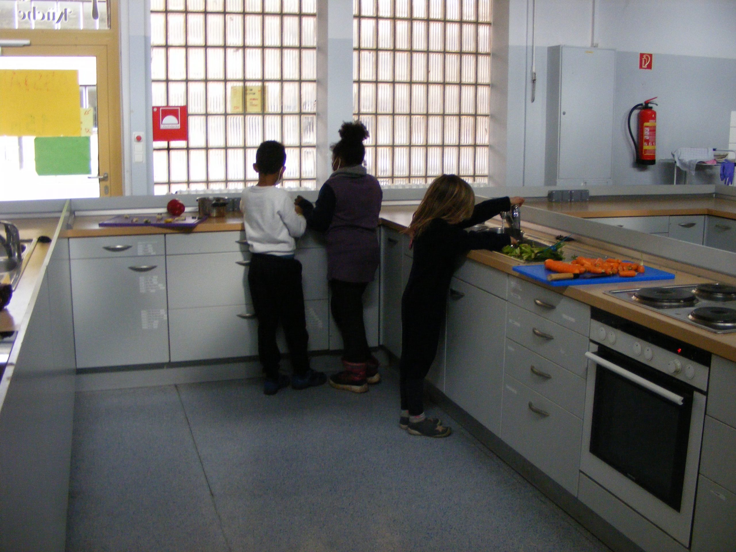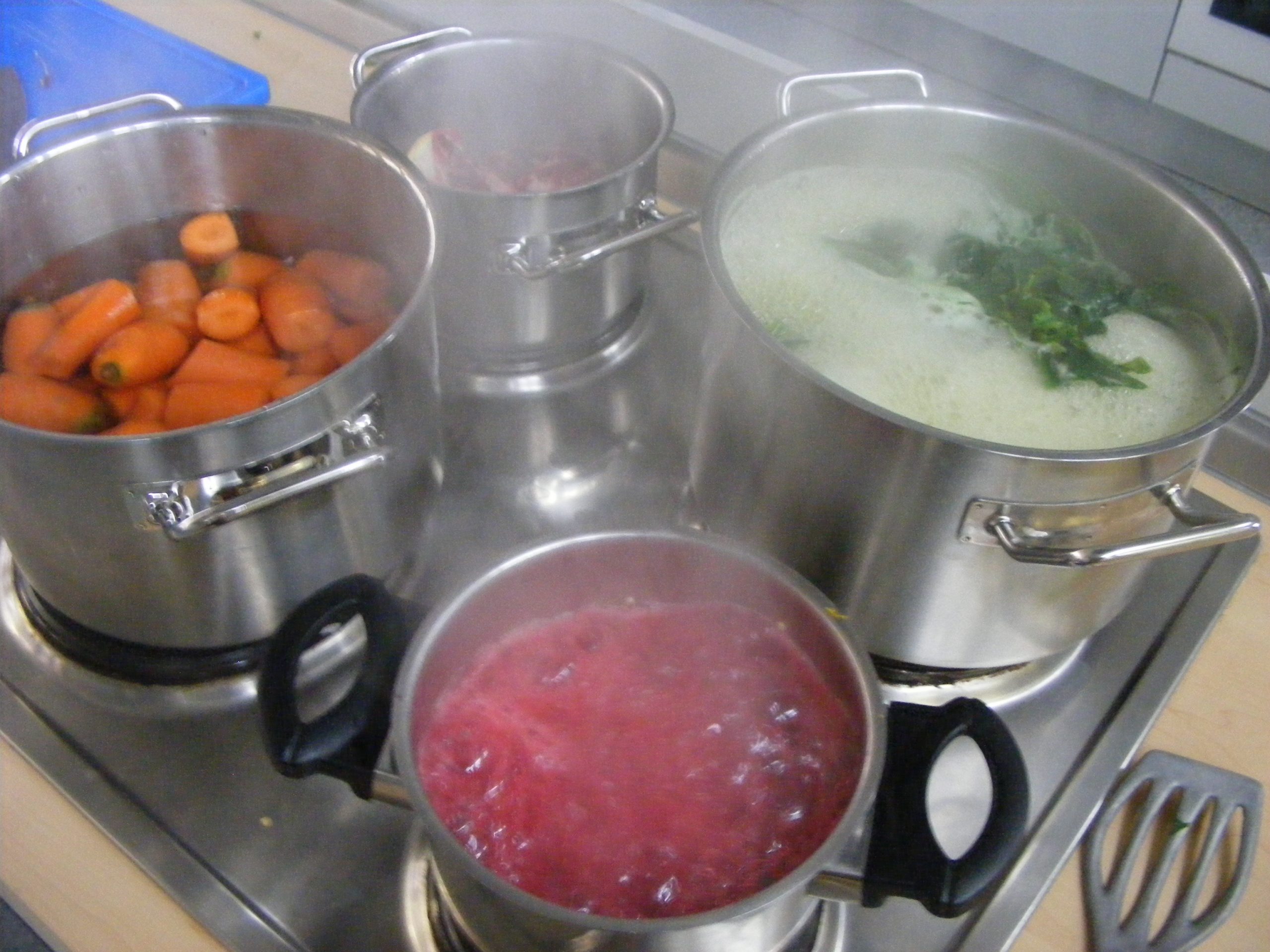 Bei unserem Besuch auf dem Wochenmarkt haben wir alles gefunden, was wir zur Farbherstellung brauchen. Gemeinsam wurde geschnitten, gewerkelt und gekocht, bis wir endlich viele tolle Obst- und Gemüsefarben hatten.