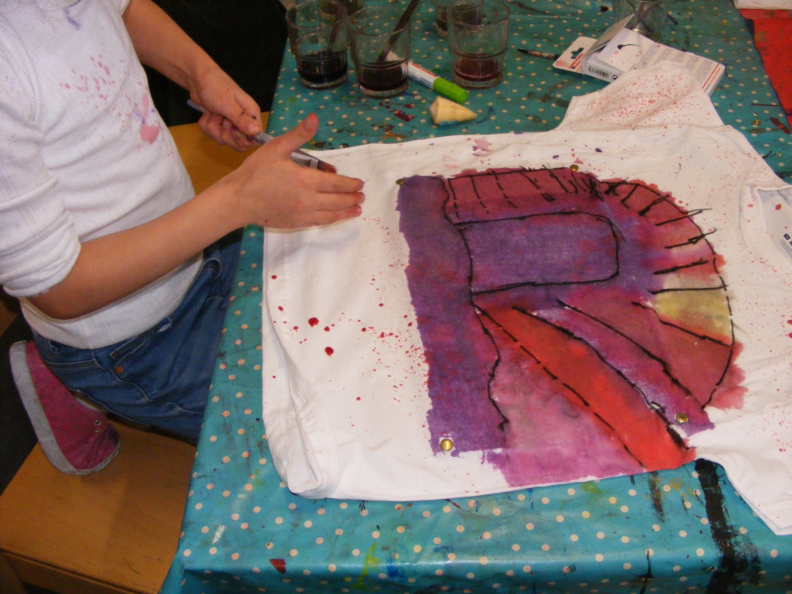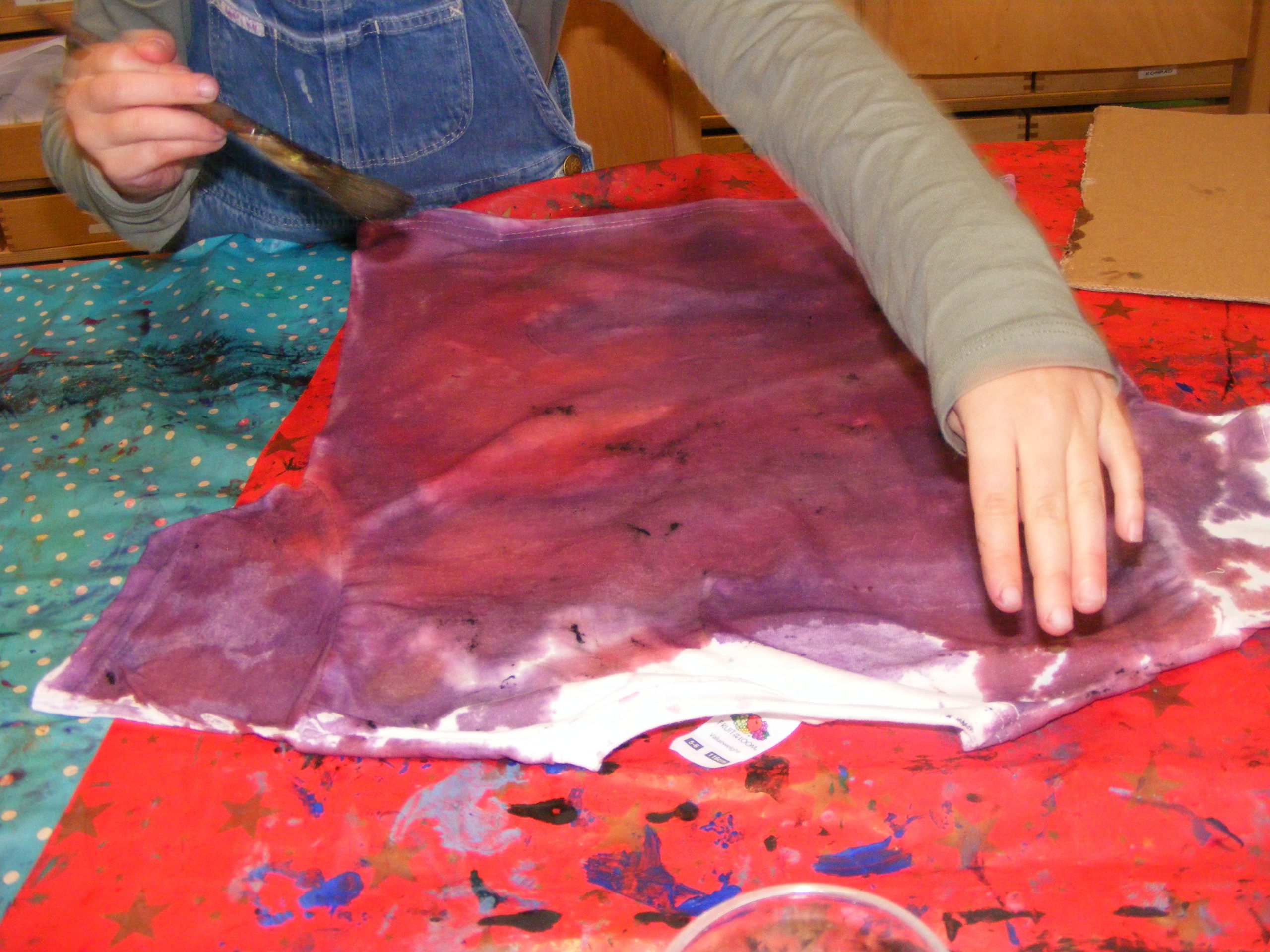Als nächsten haben wir T-Shirts mit unseren selbst hergestellten Farben bemalt: