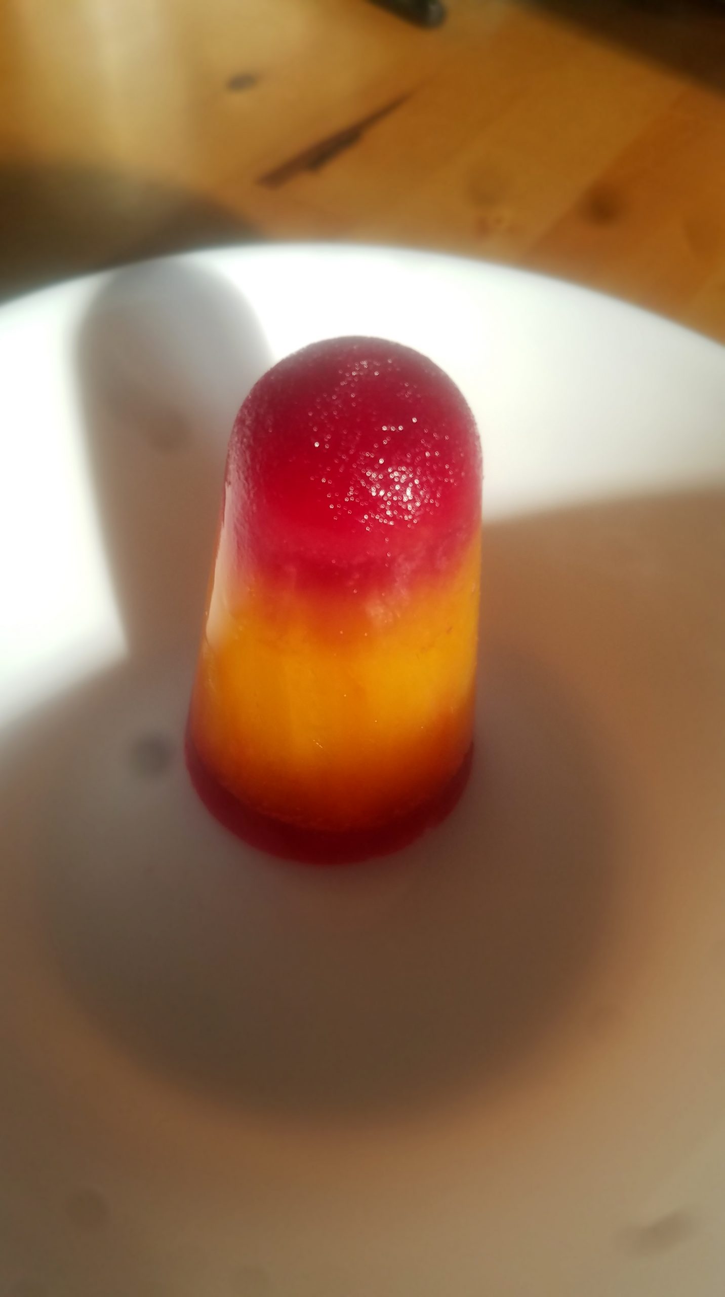Ihr könnt auch verschiedene Säfte nehmen und so ein gestreiftes Eis herstellen.