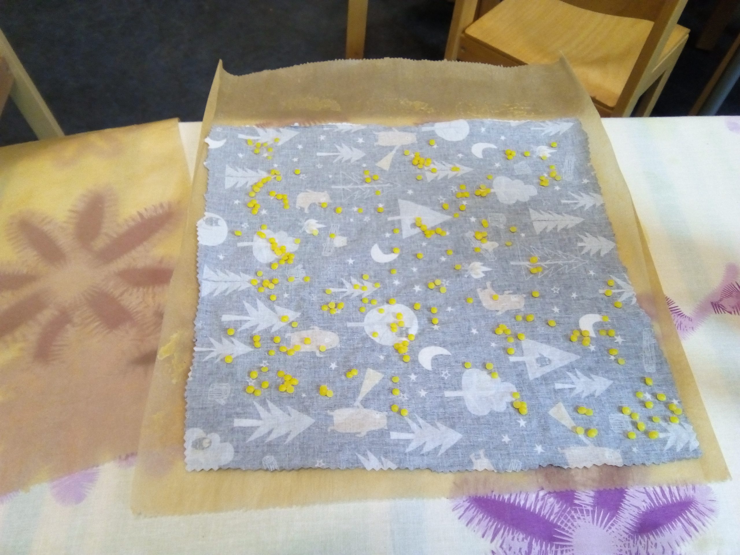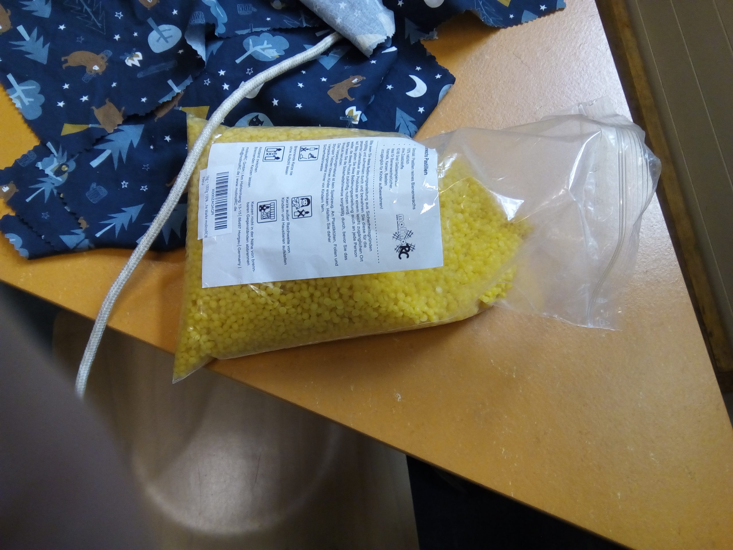 - Gemeinsam wurden Wachstücher mit echtem Bienenwachs produziert, mit welchen man sein Butterbrot oder Obst immer wieder neu einpacken kann ohne Müll zu produzieren. Ihr könnt einfach das Tuch unter Wasser abspülen und es immer wieder verwenden!